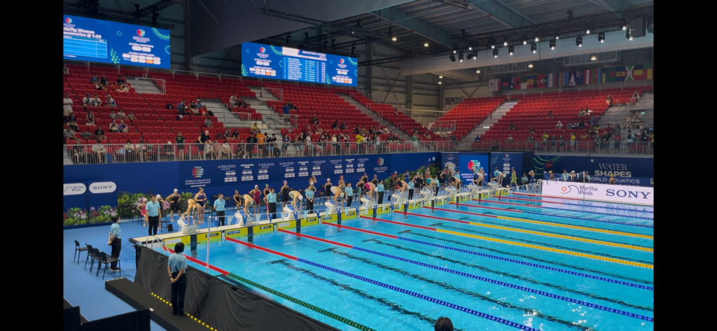 Im August fanden in Singapur die World Aquatics Championships 2025 für alle FINA-Sportarten statt, darunter natürlich auch die WM der Masters, zu der Tina Beinhauer mit einer kleinen SSG Saar-Max-Ritter-Delegation von Masters nebst Jule als Unterstützung anreiste. Zuvor war in Singapur auch schon unser SV08-Schwimmer Samyar Abdoli, der der iranischen Nationalmannschaft angehört, bei den Wettkämpfen der Aktiven auf 50m Freistil gestartet.